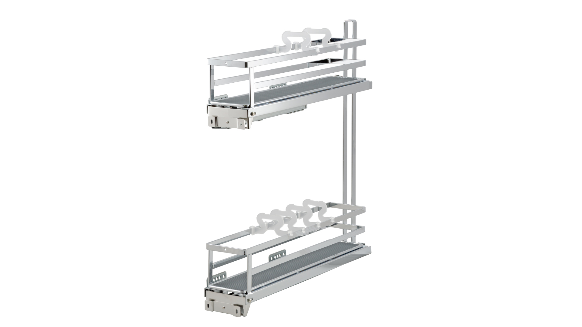 Модель обладает стильным европейским внешним видом, плоской формой боковых прутков корзин. Сплошное дно с антискользящим покрытием и дополнительные съемные делители FLORA гарантируют максимальную устойчивость хранимой утвари на обоих этажах. Кроме того, дно можно легко снять для чистки и мытья.