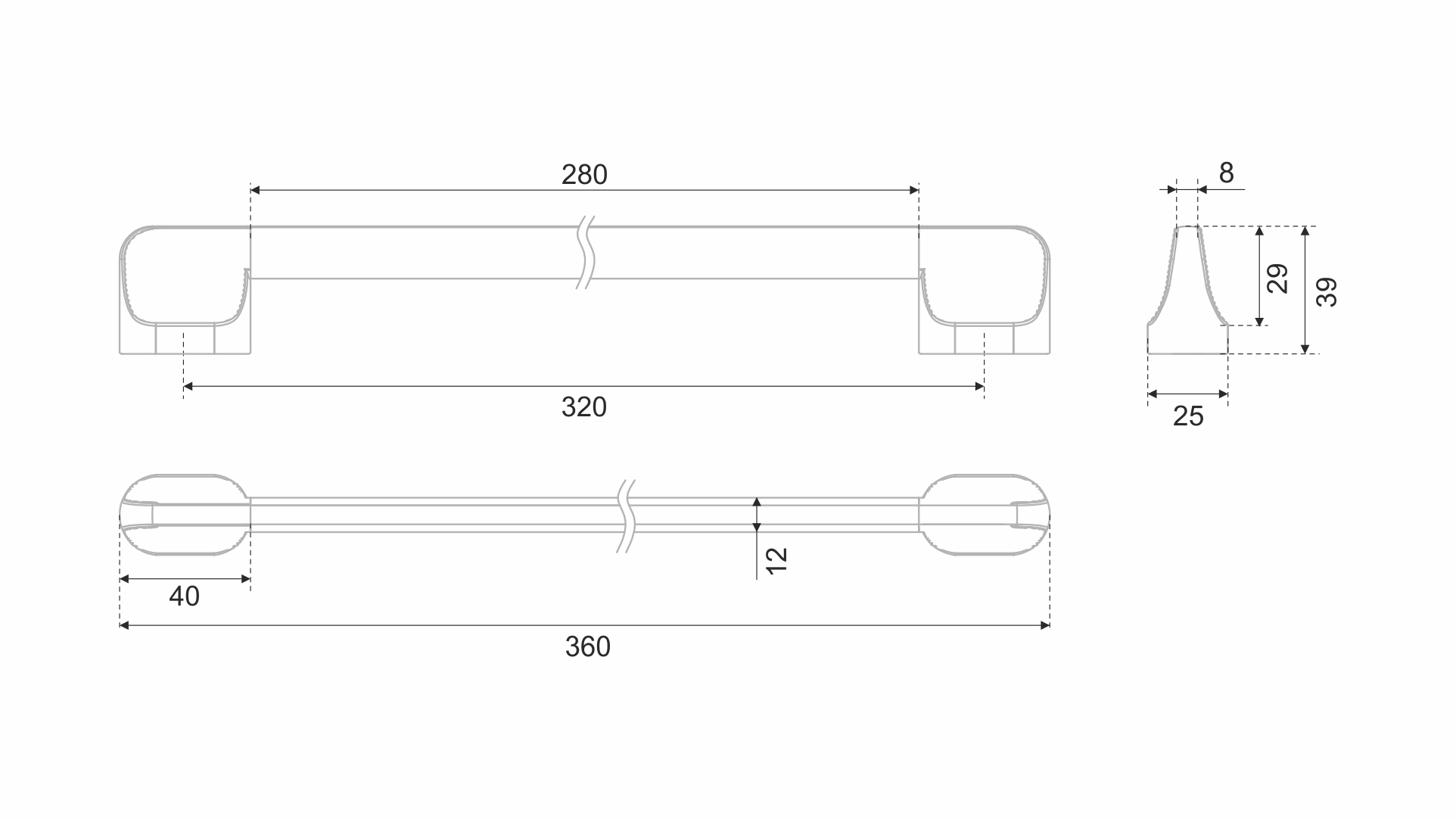 Ручка выполнена в размерах 320 мм, 480 мм для горизонтальной или вертикальной установки, и в трендовой длине 960 мм для размещения на габаритных высоких фасадах.