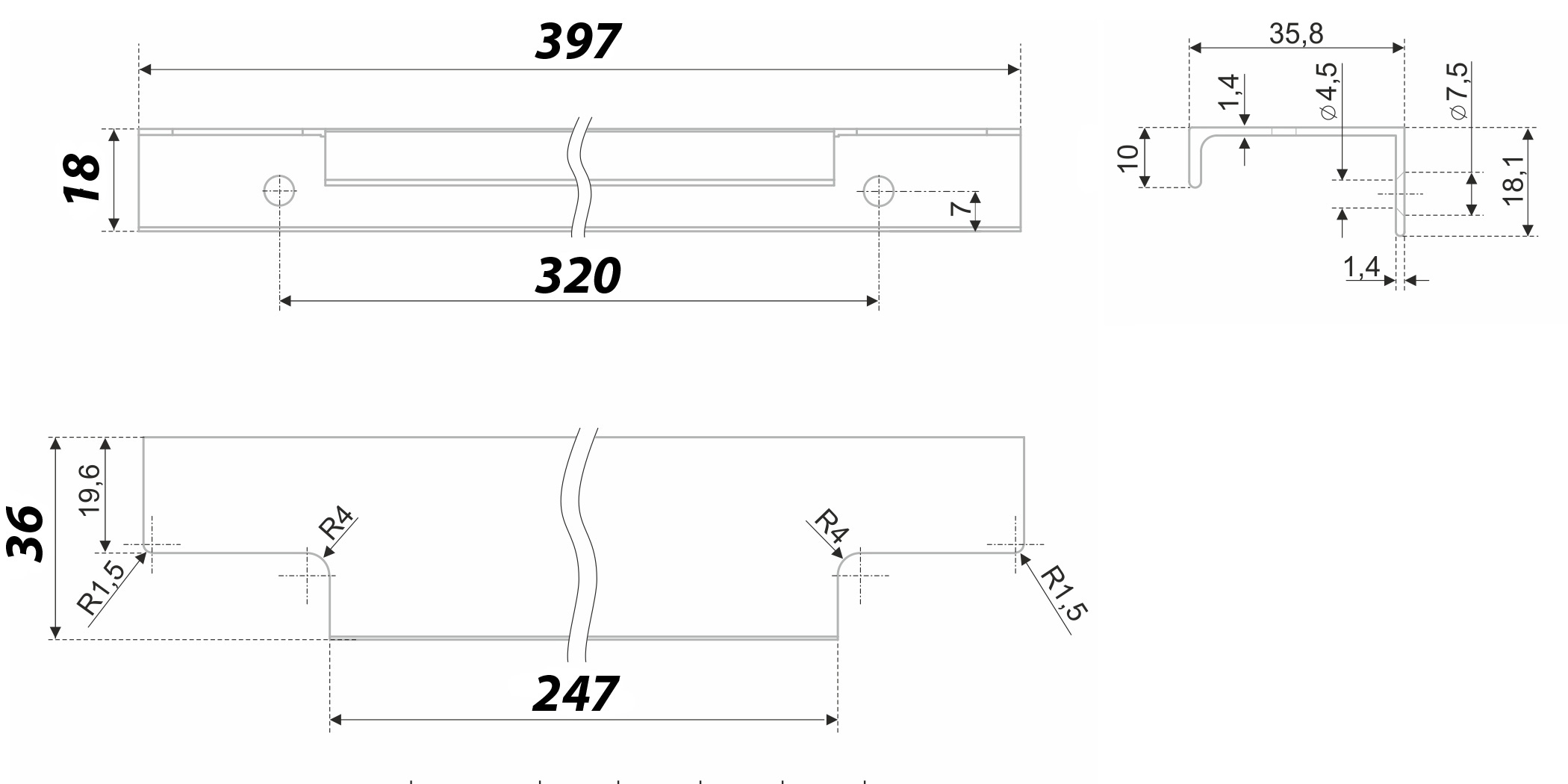 Модель крепится на фасады толщиной 16-18 мм методом наложения и фиксируется при помощи саморезов. Саморезы не входят в комплект и приобретаются отдельно. Размер саморезов необходимо подобрать самостоятельно, исходя из толщины фасада, на который будет устанавливаться ручка.